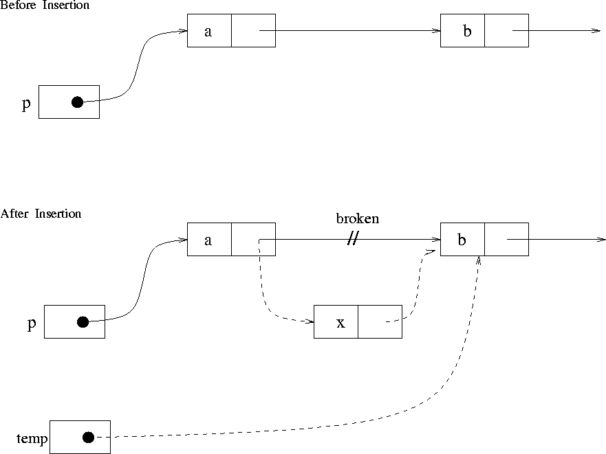 - a~b의 연결된 주소를 끊고 중간에 새로운 x를 삽입하여 주소를 연결할 수 있다.