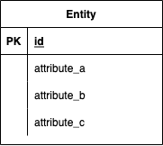 그림과 같이직사각형 최상단에 Entity의 이름을 , 좌측에 PK FK 등의 정보를, 우특에 Attribute의 이름을 표기한다.