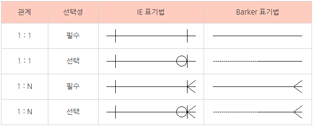 까마귀 발 표기법 까바귀 발을 닮아서 지어진 이름으로 실무에서 가장 많이 사용되는 방식이다. 여러 변형 중 Barker, IE 표기법이 대표적이다.